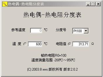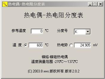 1、热电偶热电阻分度表查询软件可简单实现热电偶温度值-热电势值互换查询,热电偶分度表包含S、R、B、N、E、J、T和K型热电偶分度表。软件单纯用于热电偶分度表查询时注意将“参考温度”对话框内的值设定为“0”。