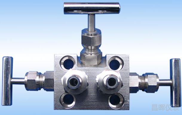 左侧为高压阀,右侧为低压阀,中间为平衡阀,当高低阀关闭,平衡阀开启时,正负压测量室压力平衡,当高低压阀开启,平衡阀关闭时,输入端压力分别为高压和低压。仪表维修调零时,只需将正负压阀关闭,即可进行差压变送器检修和调试。