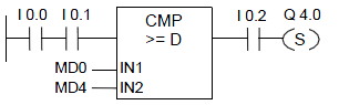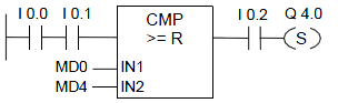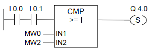 如果比较结果为“真”,则函数的RLO为“1”。如果以串联方式使用该框,则使用“与”运算将其链接至整个梯级程序段的RLO;如果以并联方式使用该框,则使用“或”运算将其链接至整个梯级程序段的RLO。