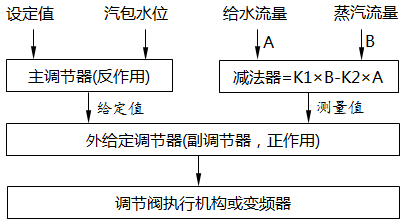 图2 锅炉汽包水位三冲量串级调节控制策略