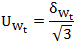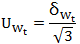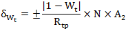 以式(5)计算得到的δWt作为数表准确度对确定Rt(即Wt)引入的不确定度来源。估计其分布来自公式(1)中的第一项标准不确定度分量,如作均匀分布对待,则