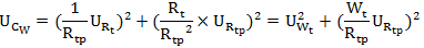 公式(1)中:Ucw为测量比值Wt的合成标准不确定度;URt为测量Rt时引入的标准不确定度分量;URtp为测量Rtp时引入的标准不确定度分量;UWt为测量Wt时引入的标准不确定度分量。