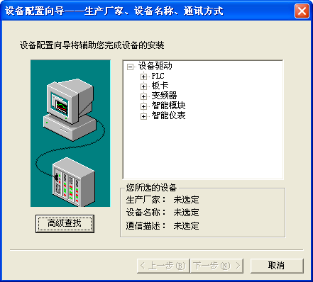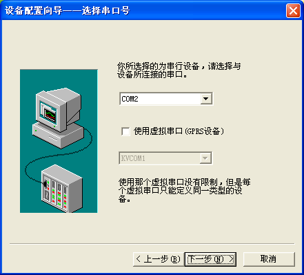 选择PLC选项下的--莫迪康--ModbusRTU--com,单击“下一步”,打开如图:
