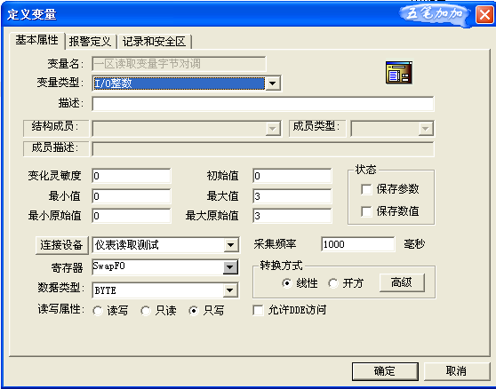 如果需要保存,可以把状态选中。对于保存数据,不在本讨论中,请自行查看组态王的数据保存。
